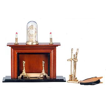 دمى البيت الجوز الفيكتوري الموقد مع الحلي بجانب النار مصغرة 1:12