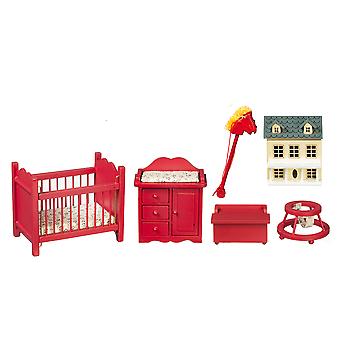 دمى البيت خشبي عميق الأحمر أثاث الحضانة تعيين مصغرة 6 قطعة غرفة الطفل