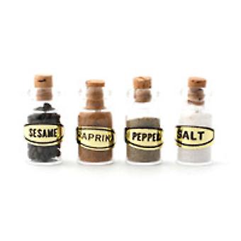 دمى البيت 4 كامل الزجاج التوابل الجرار مصغرة 1:12 مطبخ متجر مخزن التبعي