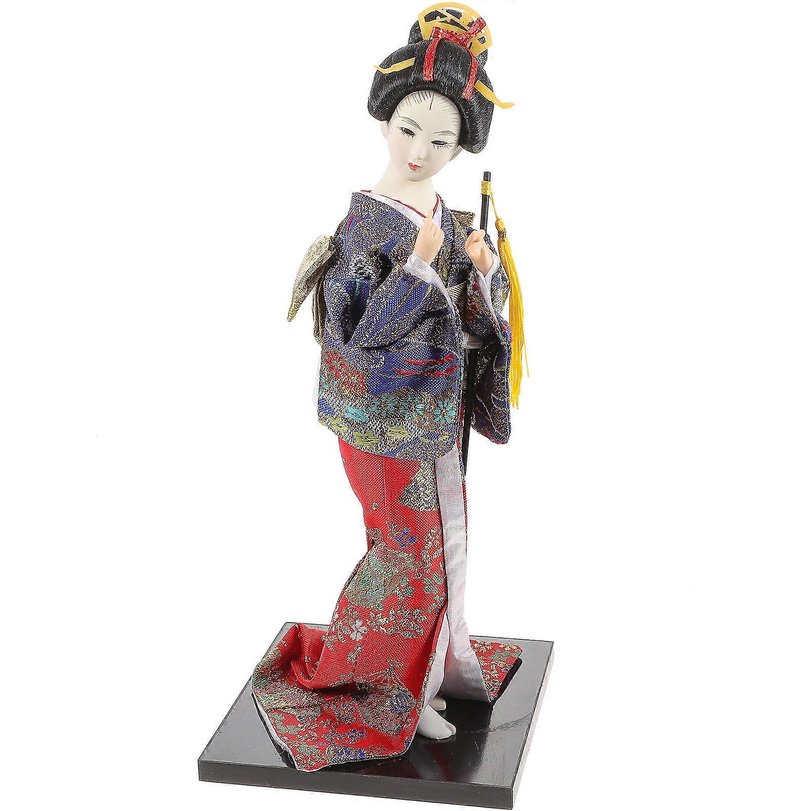 Japanese Geisha Doll Kimono Figurine Handcrafted Decorative Ornament for Home Restaurant Traditional Style
