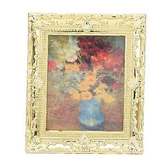 Dollhouse Oil Painting Flower Pattern Mini Mural Gold Picture Frame Simulation Model 1:12 Dollhouse Accessories