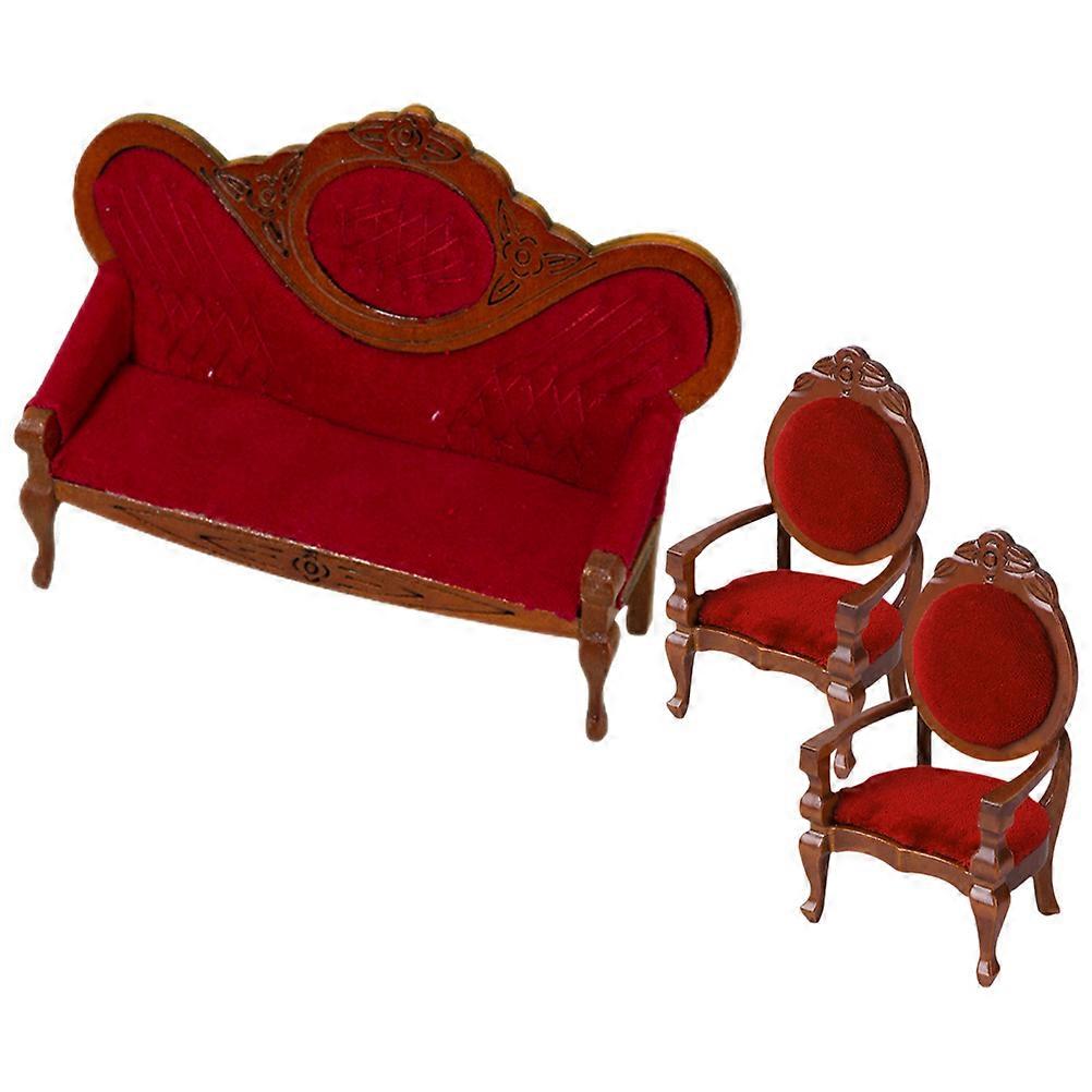 Doll House Miniature Sofa Furniture for Decor 6Pcs Red Vintage Style