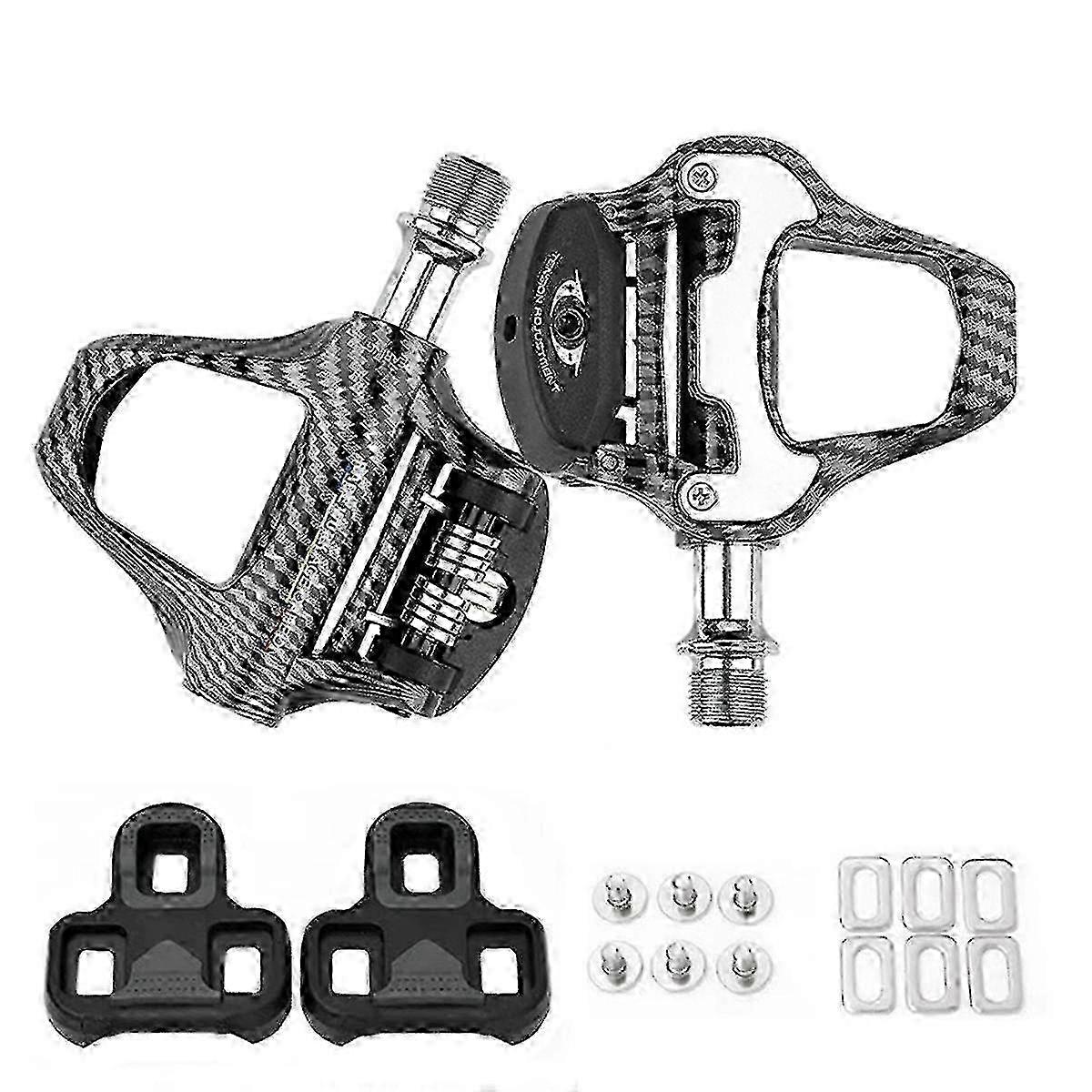 Ultralight Road Bike Clipless Pedals Carbon Fiber Plain Pattern With Sealed Bearings For Look Syst