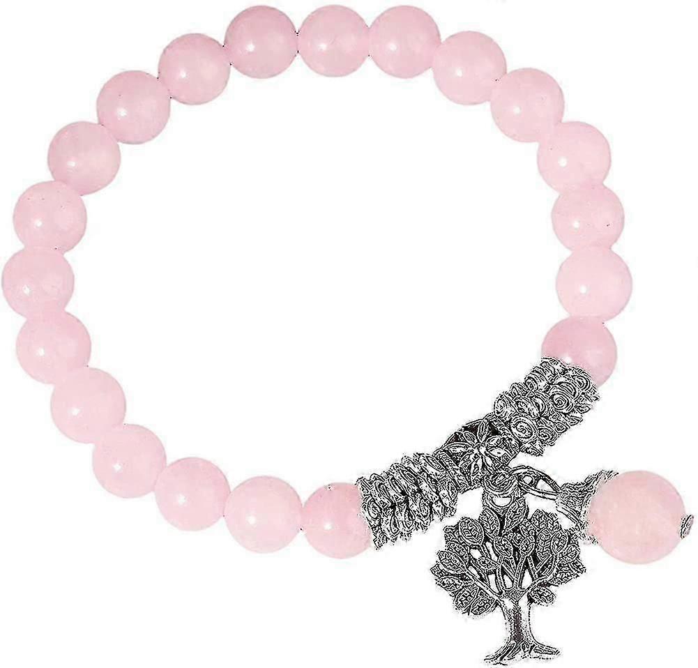 Description Material: alloy, rose quartz beads. Rose Quartz is the love stone Adds positive love energy to relationships. Compassion and forgiveness. Calming, helps clear stored anger, resentment, jealousy, fears. Replaces negativity with harmony. Helps to balance upper four chakras and eases sexual/emotional imbalances. Enhances self-confidence and creativity. . Tree of life - It symbolizes many things, including wisdom, protection, strength, bounty, prosperity, beauty, and redemption.Tree of life are used to energetically influence the senses, balancing the body, mind and soul. This stone will help you to change how you think about the whole aging process, and this change of focus is beneficial to slow aging in the body. It can bring about opportunity for change, serenity, and clarity. . Size(Approx): bracelet circumference: 7(18cm) round bead diameter: 0.3(8mm) alloy tree of life pendant size: 0.8x 0.67x 0.08(21x17x2 mm) crystal bead pendant diameter: 0.4(10mm). Due to the nature of the stone, each stone is unique, you will receive the similar one(s) as shown. . Comfortable to wear, Elastic bracelet, fit small wrist to middle wrist, suitable both for men or women. Easy to put on and take off. Good choice for daily wearing and available in any occasion. . Applicable: healing meditation yoga bead bracelet packaged in a jewellery pouch ready for gifting. These bracelets are great gifts for women men, girlfriend boyfriend. .