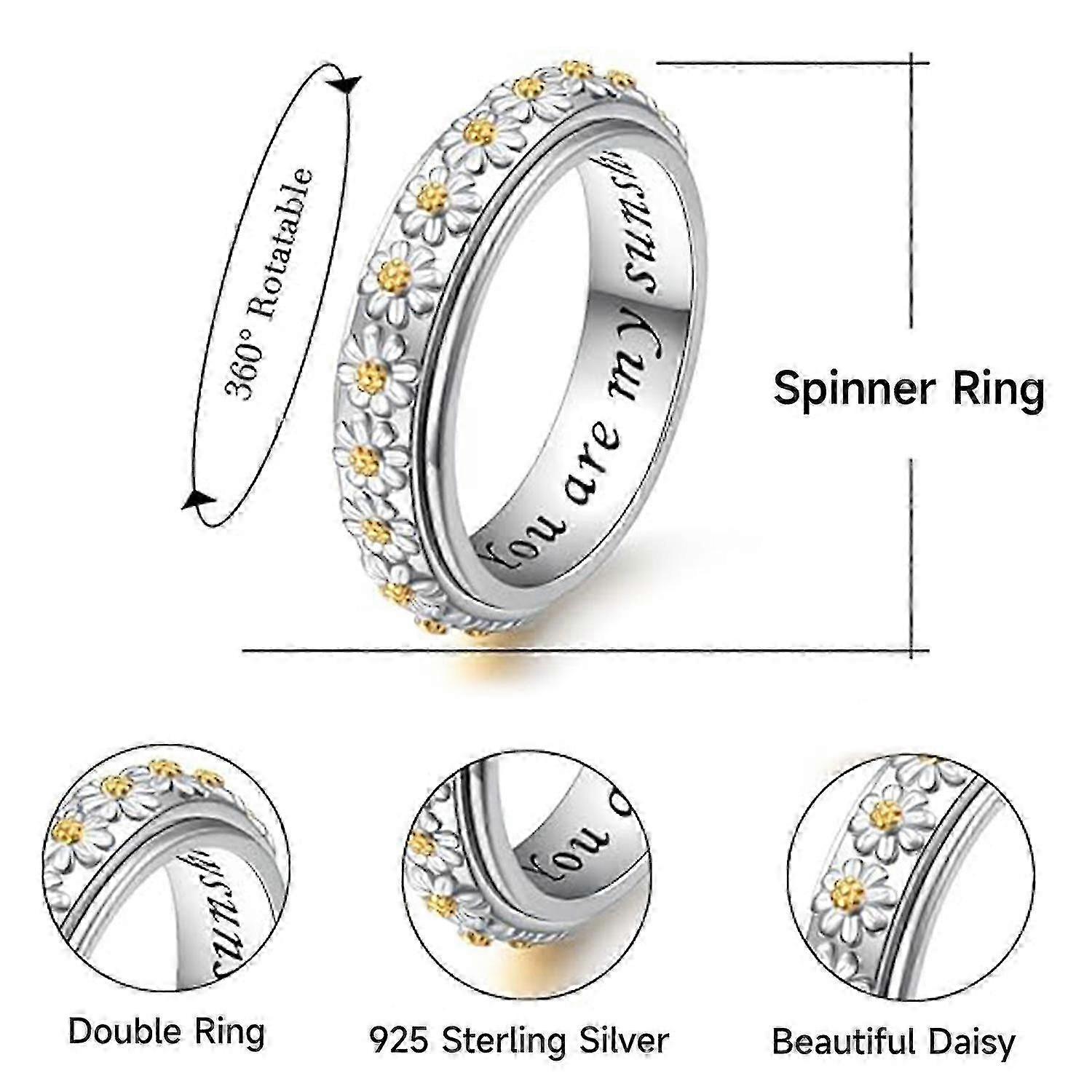 Daisy Spinner Rings,You Are My Sunshine Sunflower Anxiety Relief Fidget Ring,Stress Relieving 360 Rotatable Daisy Rings for Women Girls