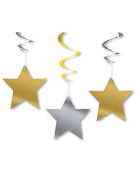 Gold and silver star hanging decorations 60 cm