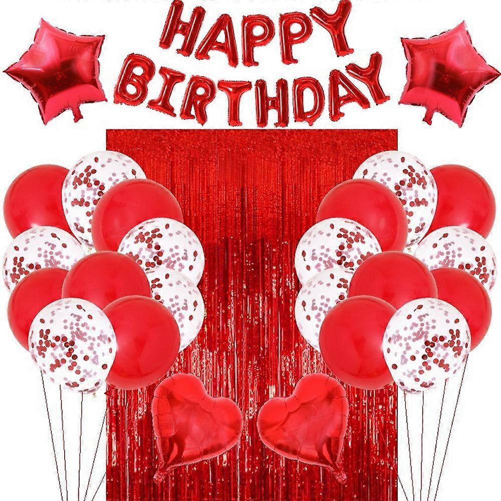 Birthday Party Decor, Latex Balloons, Happy Birthday Balloons Banner With 2 Foil Fringe Curtains Red