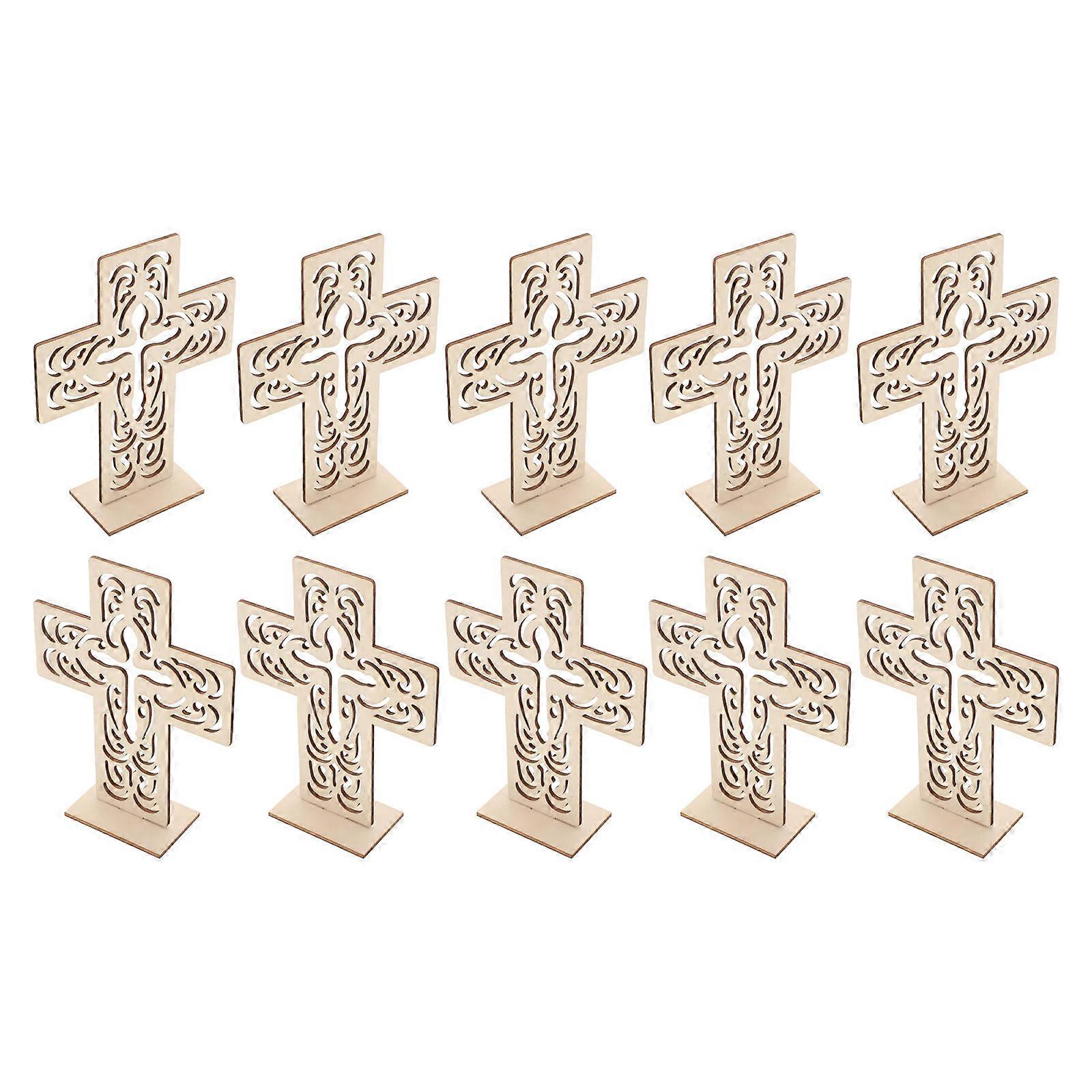 Ivory Wooden Cross Decor with Detail for Home Decor 10 Pieces Tabletop Craft Decoration