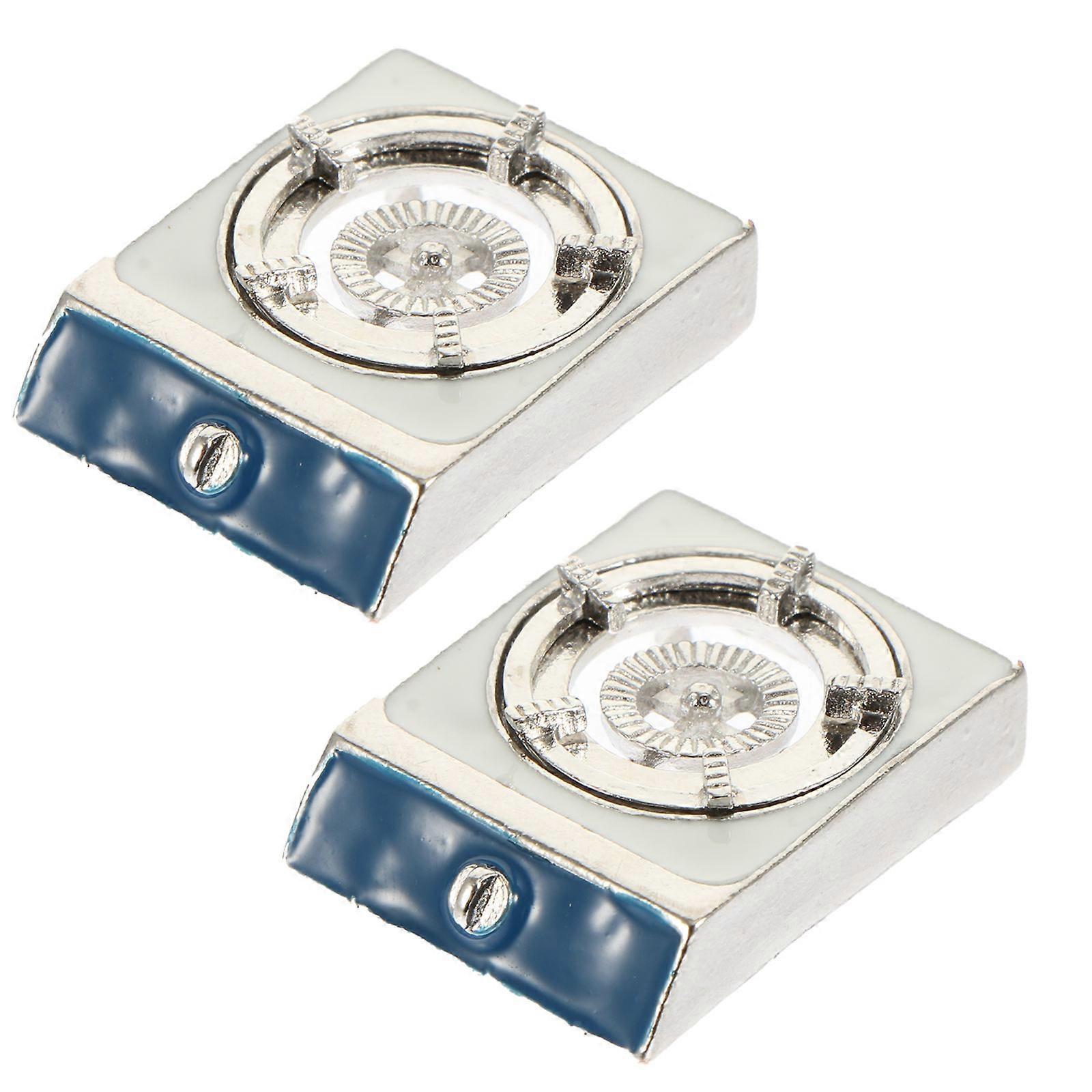Miniature Gas Stove Decor for Doll House Decoration Made of Alloy Silver Color 2 Pieces