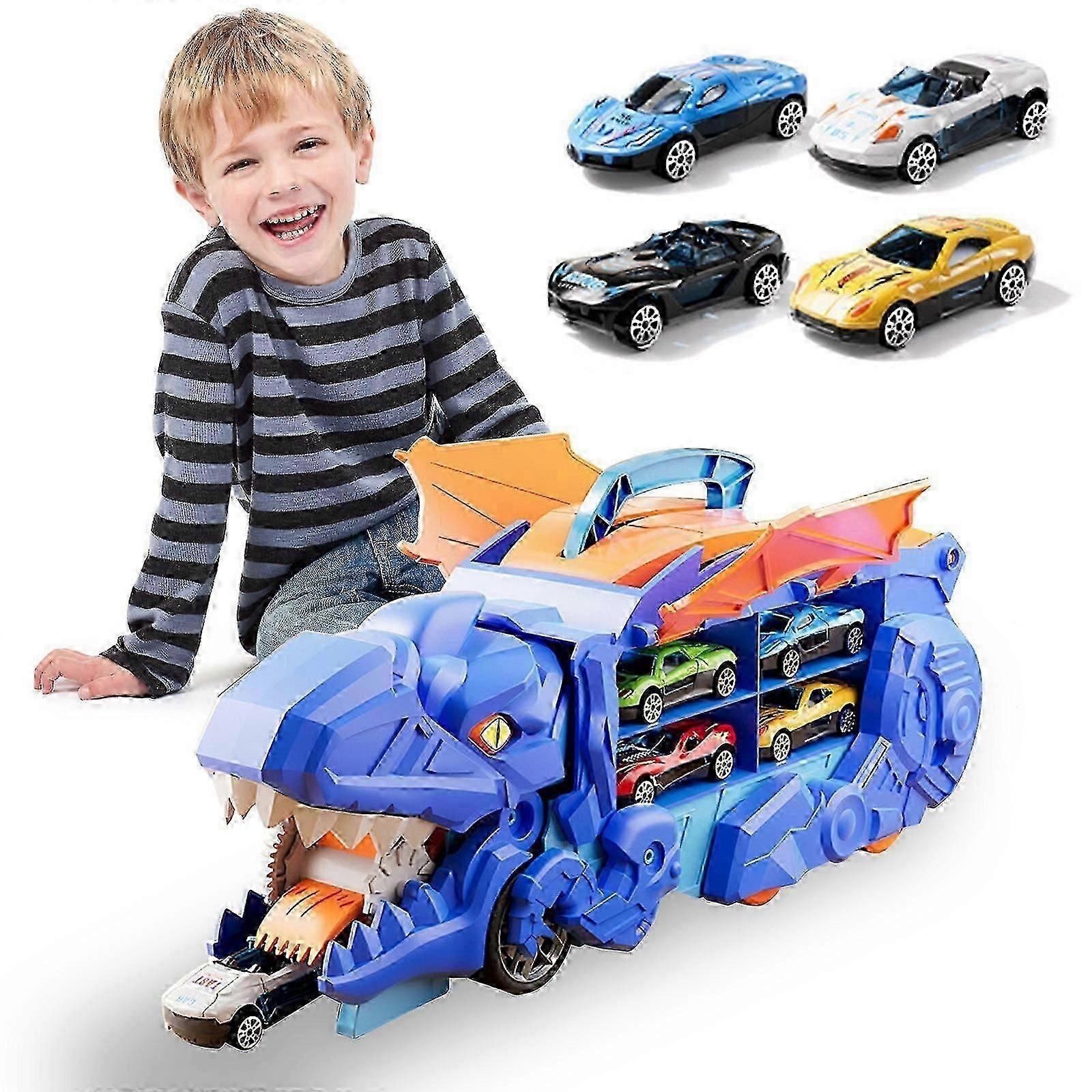 Dinosaur Truck Toys For Kids Transforms With Race Track Set Ultimate City Dinosaur Hauler With 4 Cars Birthday Gifts Toys For Boys 3 4 5 6 7 8 Years O
