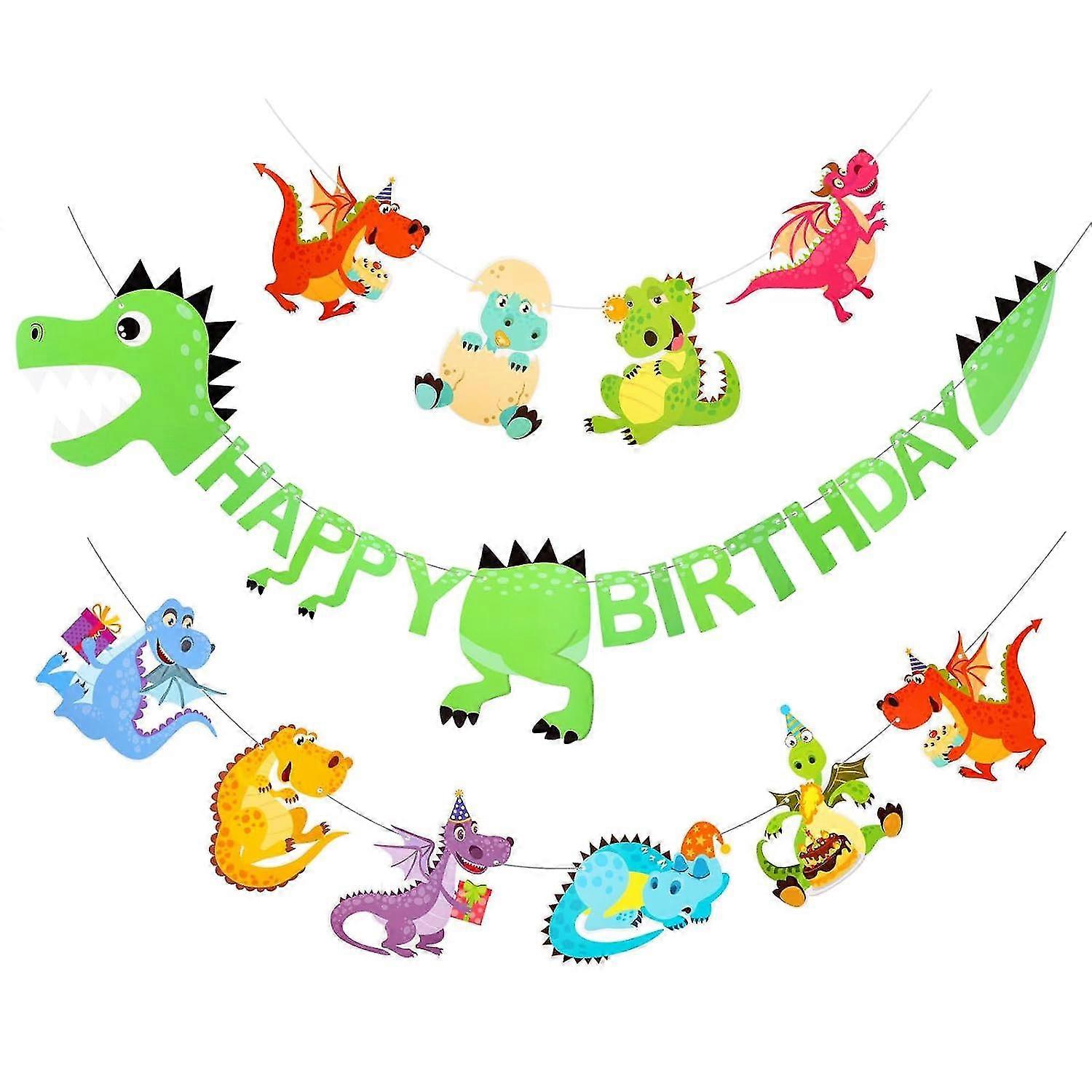 Dinosaur Happy Birthday Banner, Dinosaur Themed Birthday Decorations for Boy Girls Birthday Party
