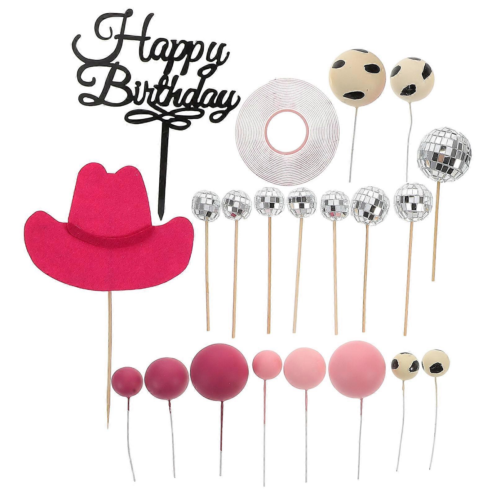 Cowgirl Hat Cake Toppers Pink Miniature Hat for Birthday Party Decorations 21Pcs