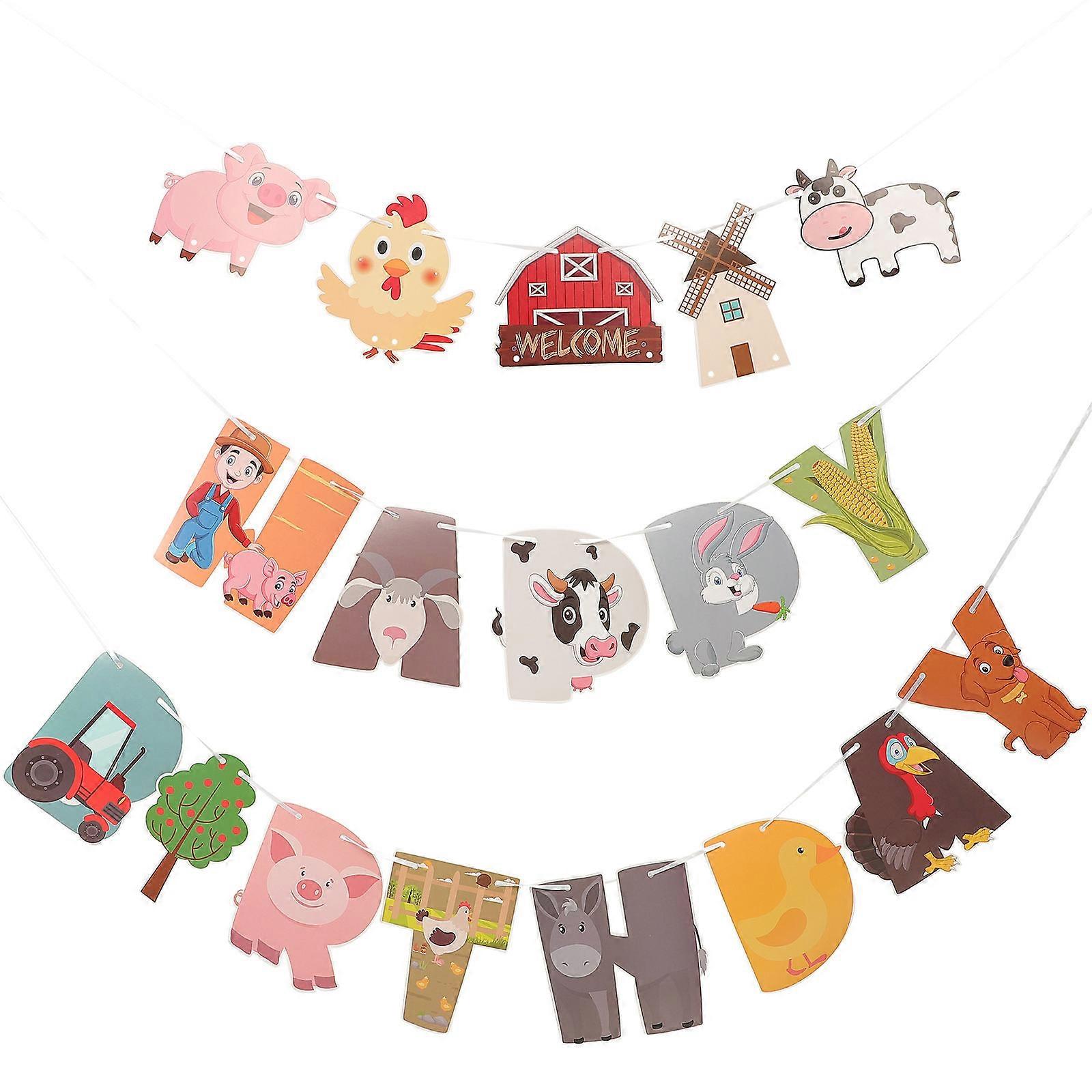 Animals Banner Farm Animals Birthday Banner Cartoon Style Indoor Outdoor Decoration Assorted Color 1Pack
