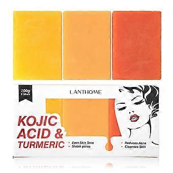 Turmeric kojic acid soap deep cleansing and acne reduction: our turmeric kojic acid soap is made with Kojic Acid, a powerful ingredients that specifically combats blackheads, acne and skin dullness. It deeply cleanses the skin, thoroughly removes dirt and impurities from the pores and helps to harmonise the skin tone. For visibly clearer, healthy and radiant skin. Effective reduction of dark spots: our turmeric kojic acid soap helps to reduce melanin deposits and fade dark spots on the skin. The advanced formula improves skin texture and provides an even complexion, ideal for use on face and body. Intensively nourishing moisturising: this turmeric kojic acid soap combines kojic acid with nourishing turmeric and vitamin C to provide your skin with comprehensive moisture. It gently cleanses while providing deep nourishment without drying out the skin, leaving your skin soft and supple. Versatile for all skin types: Turmeric Kojic Acid Soap is suitable for all skin types - dry, oily and combination skin. It effectively solves various skin problems, provides intensive moisture and promotes a healthy skin structure. Ideal for a comprehensive skincare routine. Easy to use for maximum effect: the kojic acid soap is available in 3 different flavours from which you can choose. Use Turmeric Kojic Acid Soap along with a foaming net and water to create a luxurious lather. Apply the foam to the face and body and rinse thoroughly. For best results, supplement the application with a moisturising lotion.