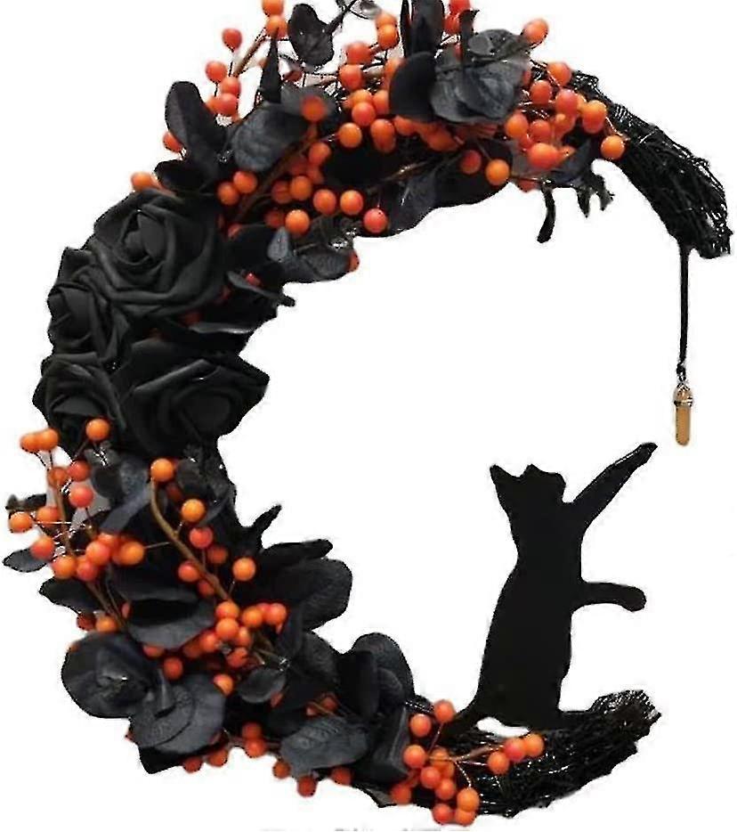 Exquisite Halloween Decor Moon Cat Garland Halloween Decor Decoration Gothic Black Rose Crystal Moon Wreath Halloween Decor Decor For Front Door