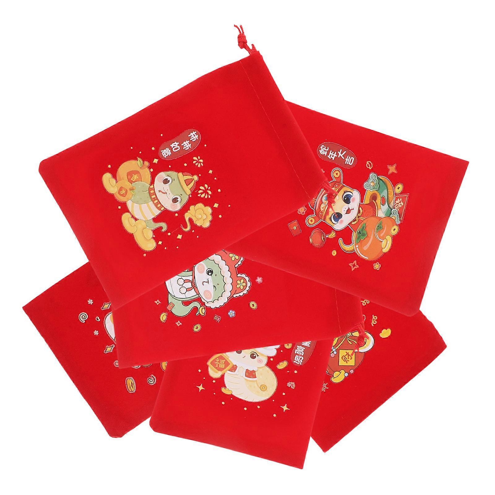 Lunar New Year 2025 6Pcs Red Drawstring Pouches For Party Guests Gift Giving With Durable Fabric Material