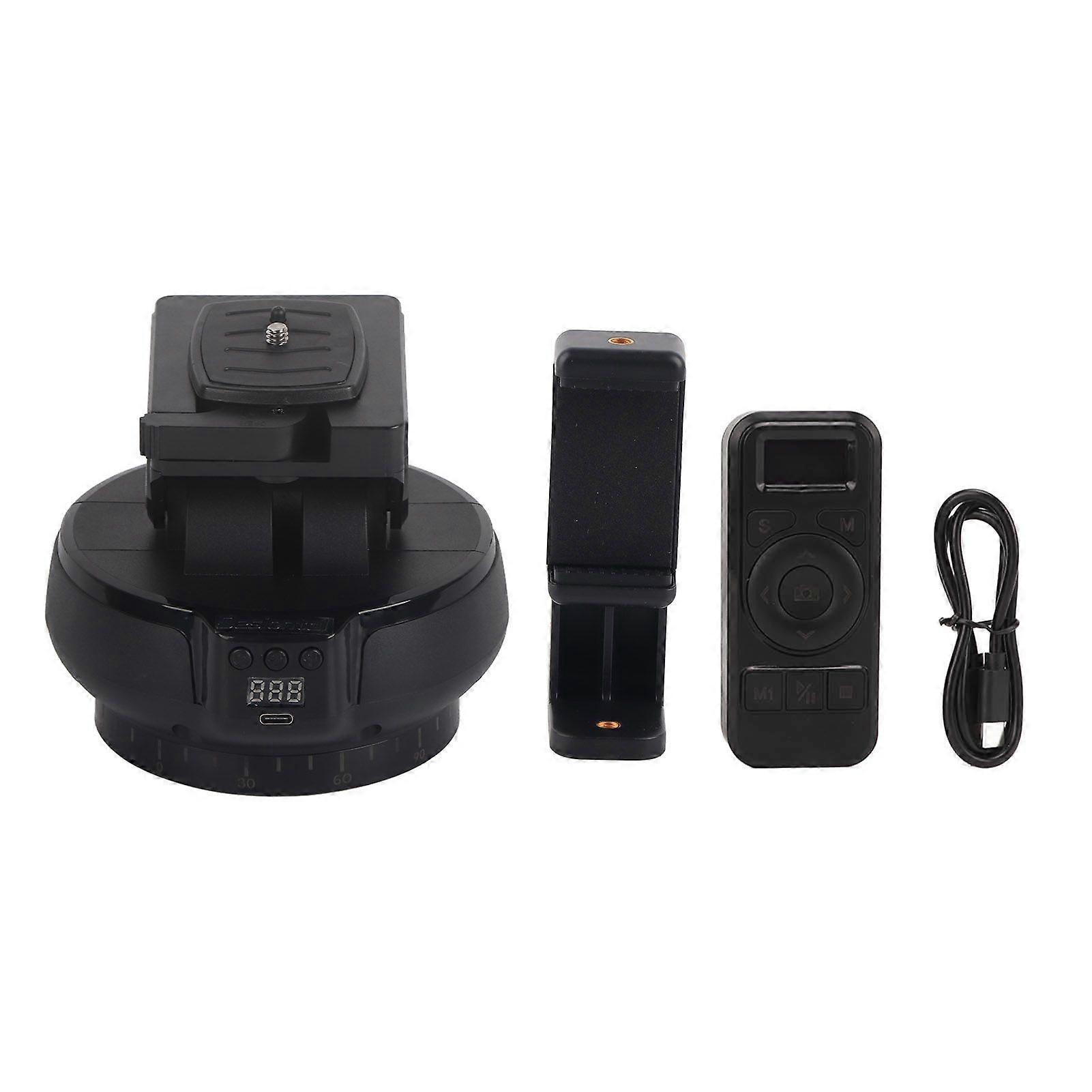 Feature:1. Pan Rotation and Pitch Angle: Support horizontal 360 wireless rotation, tilt 35, speed can be adjusted in 9 gears, suitable for various creative photography, Vlog shooting, etc.2. Ball Head Interface and Applicable Models: The top 1/4 inch screw has wide compatibility, suitable for mobile phones, mirrorless cameras, SLRs, etc. The bottom has a 1/4 inch screw hole, which can be installed on a tripod.3. Multi Shooting Functions: 2.4G wireless remote control, with visual display, up to 100 meters remote control pan and tilt horizontal angle, pitch angle, speed, various shooting functions.4. Wide Range of Functions: With 3.5mm shutter release interface, support AB point positioning shooting, time lapse shooting, intelligent automatic shooting mode, panoramic shooting.5. Phone Clip and Tpye C Charging: Equipped with a mobile phone clip, the clamping range is 69.5cm, and it supports horizontal and vertical shooting, 360 rotation shooting. Tpye C charging interface, built in 2000mah large capacity rechargeable battery. With a maximum load of 1Kg.Specification:Item Type: Motorized Panoramic Tripod HeadMaterial: ABSColor: As Pictures ShownWeight: Approx. 785g / 27.7ozMobile Phone Clip Can Hold Range: Approx. 6-9.5cm / 2.4-3.7inThe Maximum Load Bearing of the Ball Head: Approx. 1000g / 2.2lbStandby Time: 24HRated Charging Voltage: 5VPan Rotation: 360 Infinite AdjustmentPitch Angle: 35Remote Control Distance: Approx. 100m / 328ft (Range of Visibility)Remote Control Channel: 00-99Wireless Frequency: 2.4GHorizontal Speed: 9 Gears AdjustableVertical Speed: 9 Gears AdjustableBall Head Battery Type: 1 x 18650 3.7V 2000mAh (Delivered with Built in Battery)Ball Head Interface: 3.5mm Release Cable Interface, 1/4 Inch Screw, 1/4 Inch Screw Hole, Type C Charging PortRemote Control Battery Type: 2 x AAA (Delivery Without Battery)Ball Head Size: Approx. 134x129x115mm / 5.3x5.1x4.5inApplicable Models: Mobile Phones, Mirrorless Camera, SLR, Etc..Package List:1 x Ball Head 1 x Remote Control(Battery Not Included)1 x Mobile Phone Clip1 x Charging Cable1 x ManualNote:Do not turn the rotating body manually, otherwise the motor will be damaged.Please note that the new type and old type of this product will be sent randomly, and make sure you will not mind before ordering.
