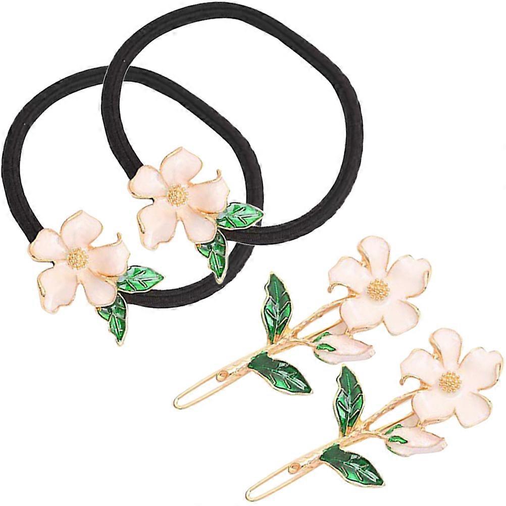 Elastic Hair Ties For Women Flower Hair Clips Ponytail Holder Assorted Color Elegant Decoration 1 Set