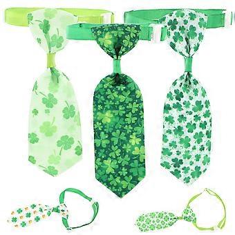 Adjustable Pet Neckties 5Pcs Clover Shape St. Patrick's Day Festival Green Polyester for Pet Cats and Dogs
