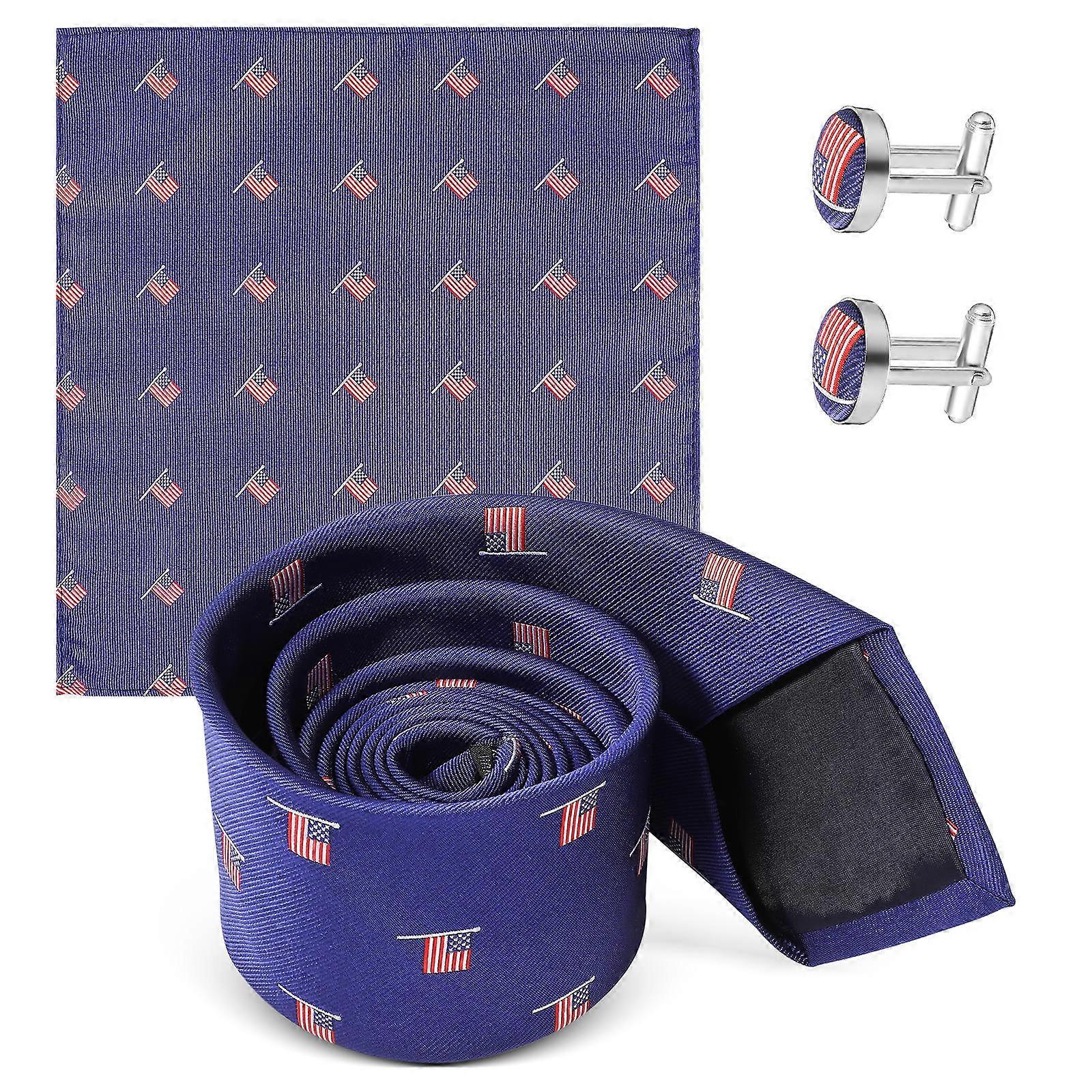Formal Necktie with Pocket Square USA Flag Design Elegant Business Suit Accessory for Weddings Events Durable Needle Ensemble