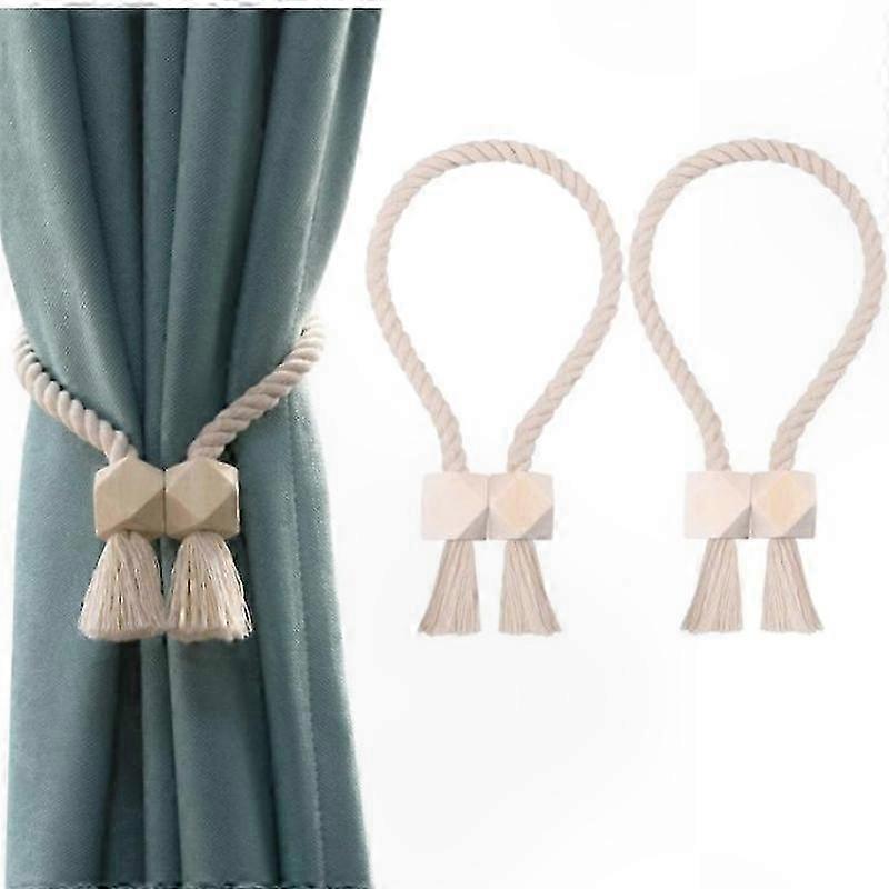 Handwoven Cotton Tiebacks for Curtains, Magnetic Curtain Holders, Beige Pair