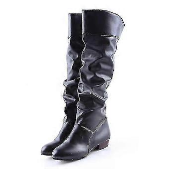 ربيع المرأة أسود أبيض الركبة أحذية عالية مرونة بو الأحذية الجلدية أحذية نسائية- يوجيا