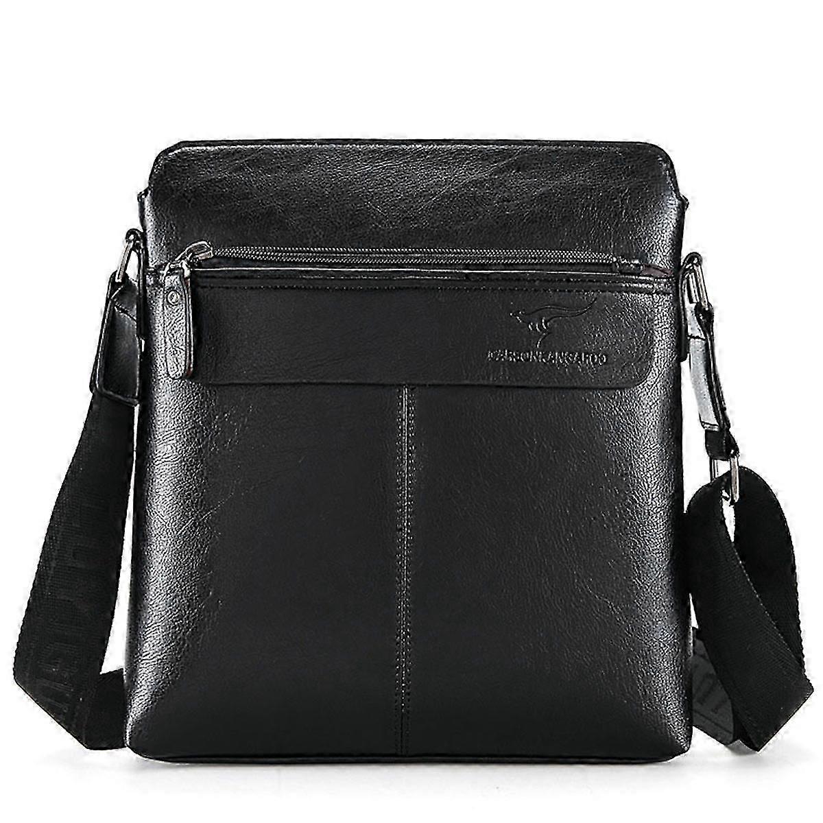 Men's Black Leather Messenger Bag Crossbody Shoulder Satchel for Work School Multiple Pockets
