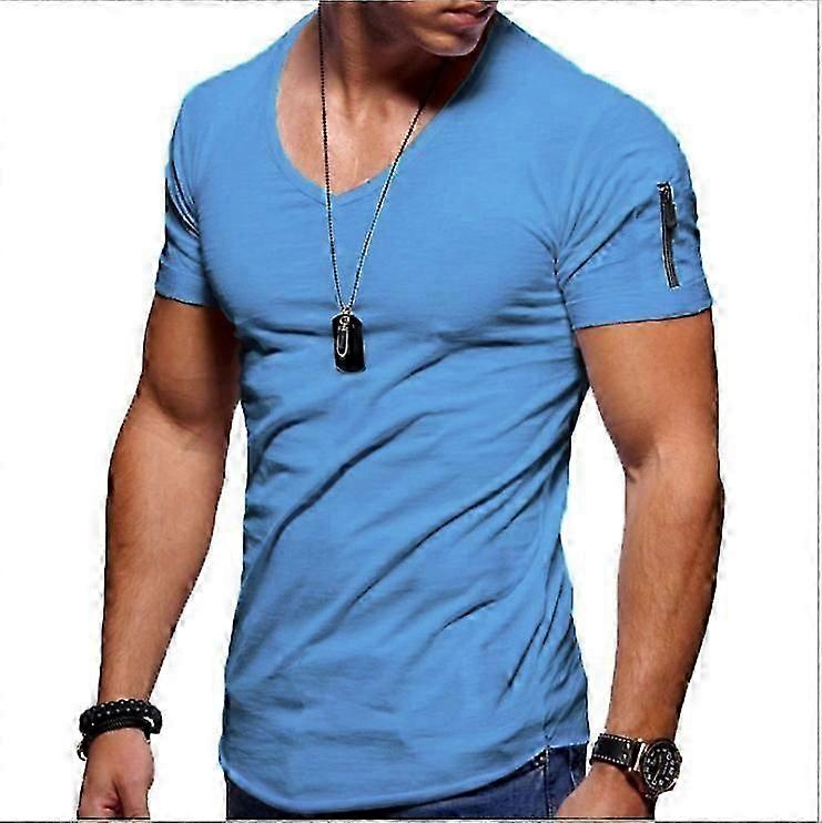 Men's T-Shirt Men's V-Neck Solid Color Large Size Casual Short Sleeve T-Shirt
