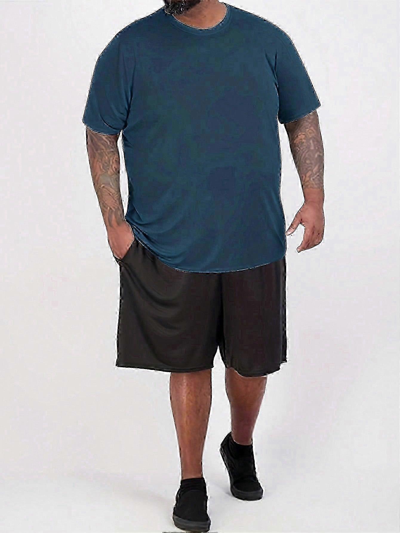 Men's Plus Size Solid Color Round Neck Short Sleeve T-shirt, Slim Fit, Side Stripe