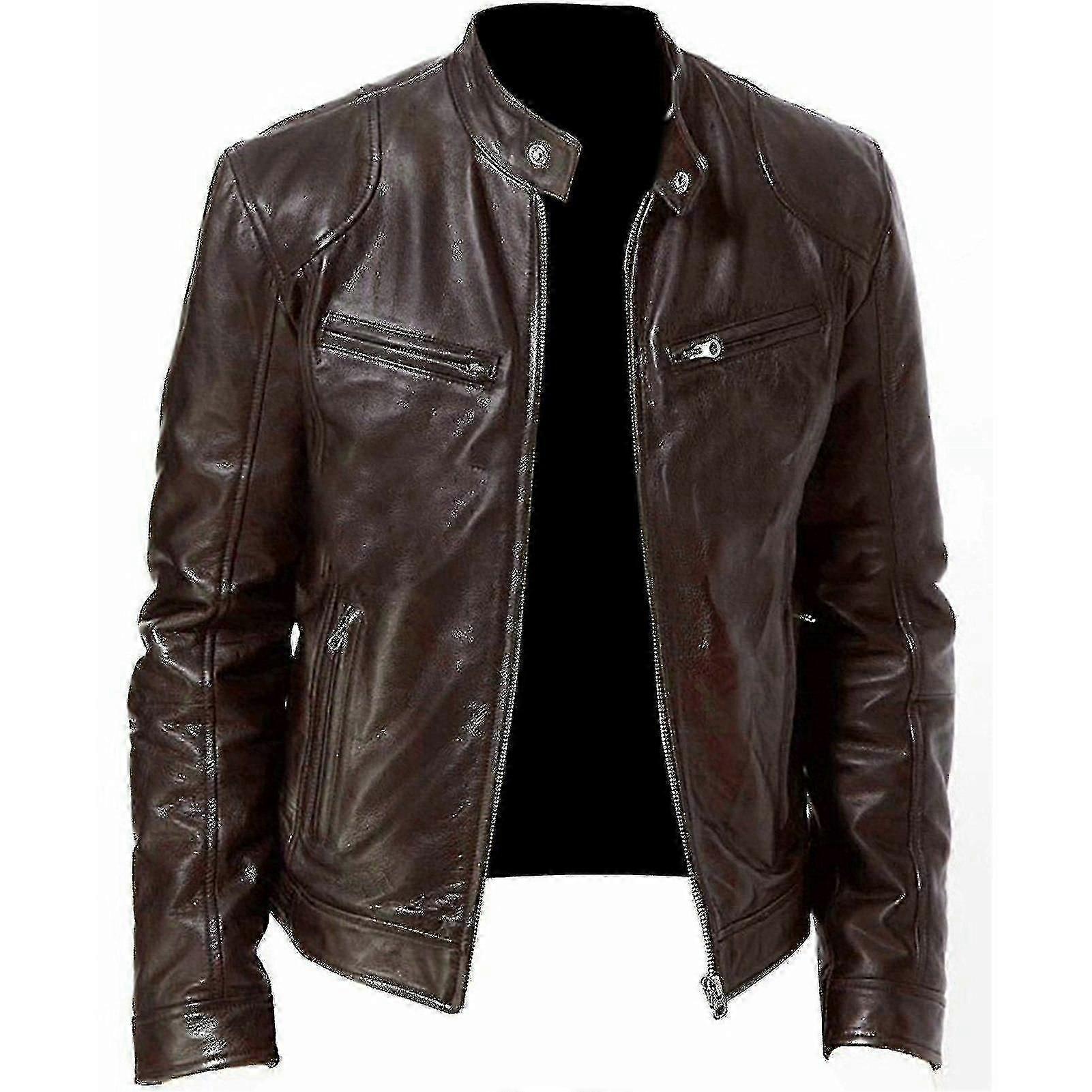 Men's Casual Leather Jacket Front Zipper Closure Vintage Outerwear Suitable for Work Driving Travel Wear
