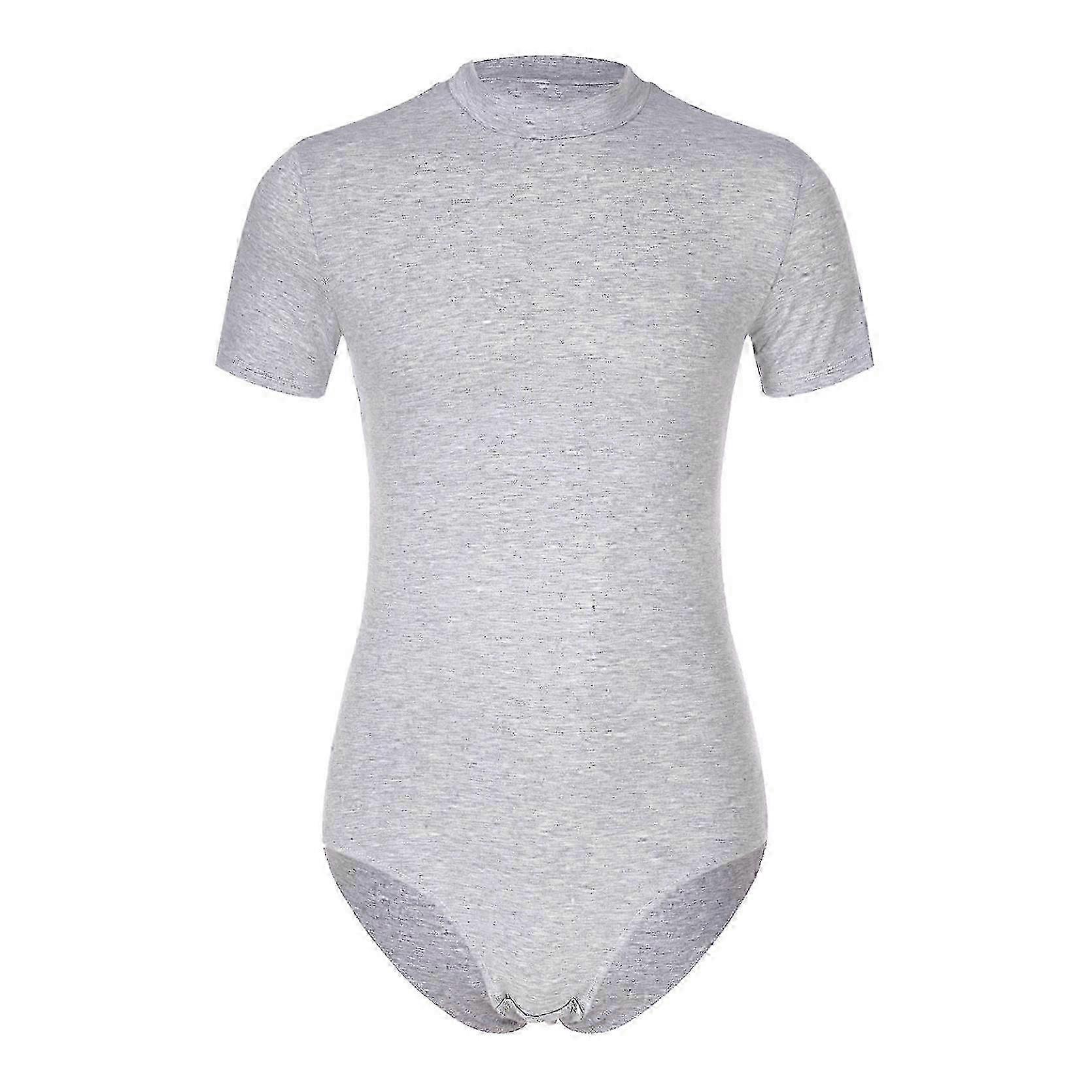 Men's One Piece Short Sleeve Button Crotch Shirt Bodysuit Leotard Romper Pajamas Undershirt