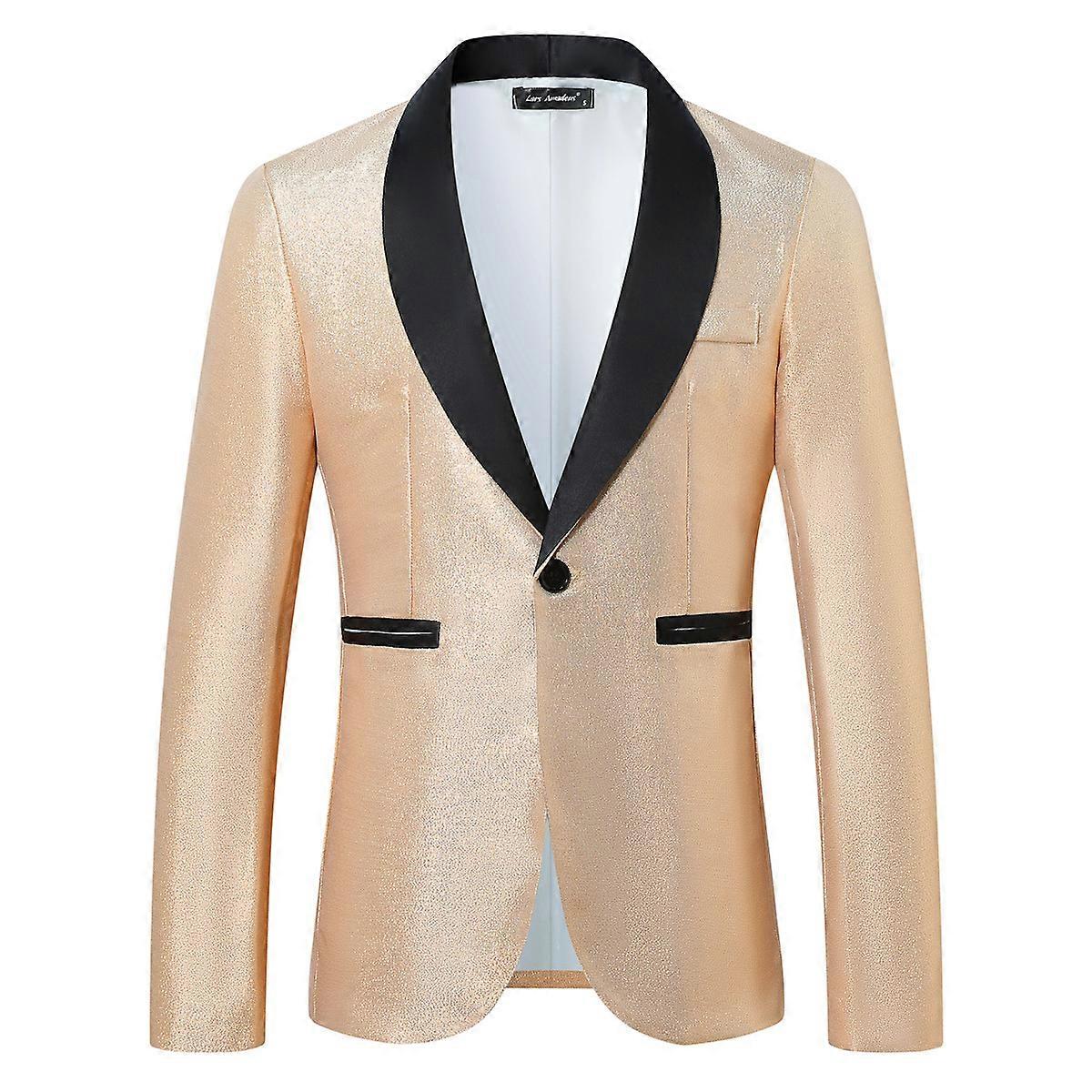 Mens Shiny Champagne Silk Dress Blazer,One Button Jacket