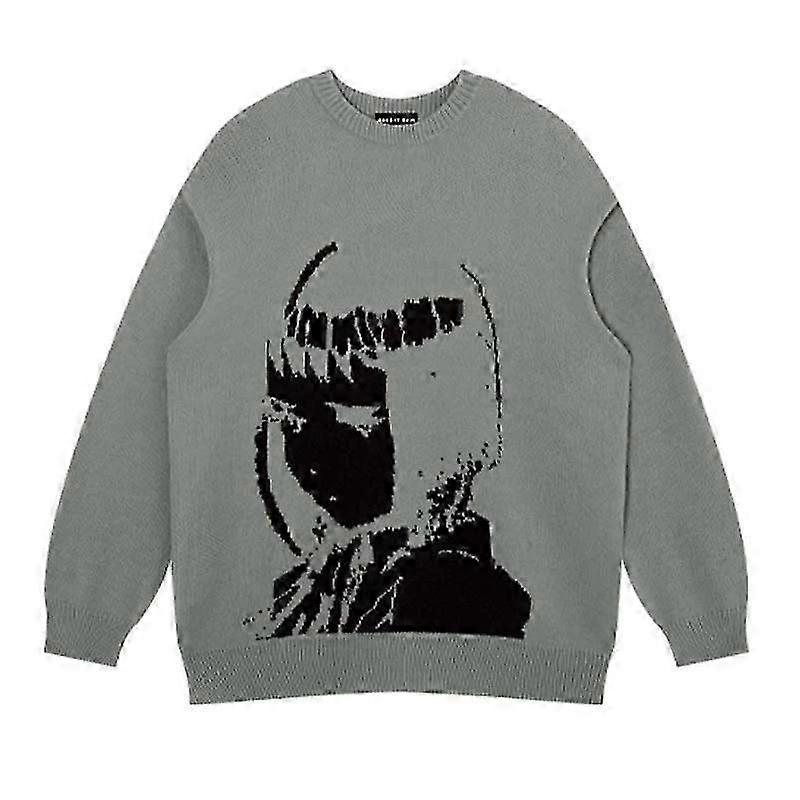 Mens Streetwear Harajuku Sweater Vintage Retro Japanese Style Anime Portrait Print Knitted Sweater 2021 Autumn Cotton Pullover