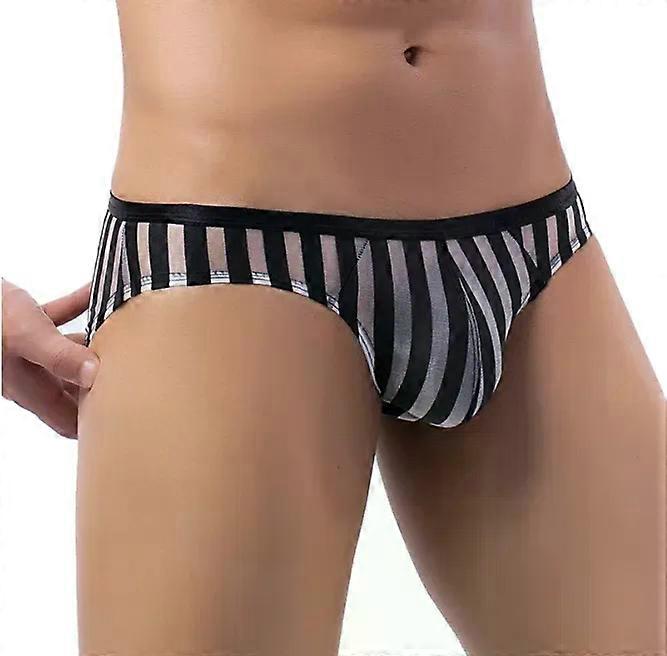 Men's Underwear Gay Transparent Mesh Underpants Ultra-Thin Stripes Panties Erotic Transparent Low-rise U Convex Pouch Brief