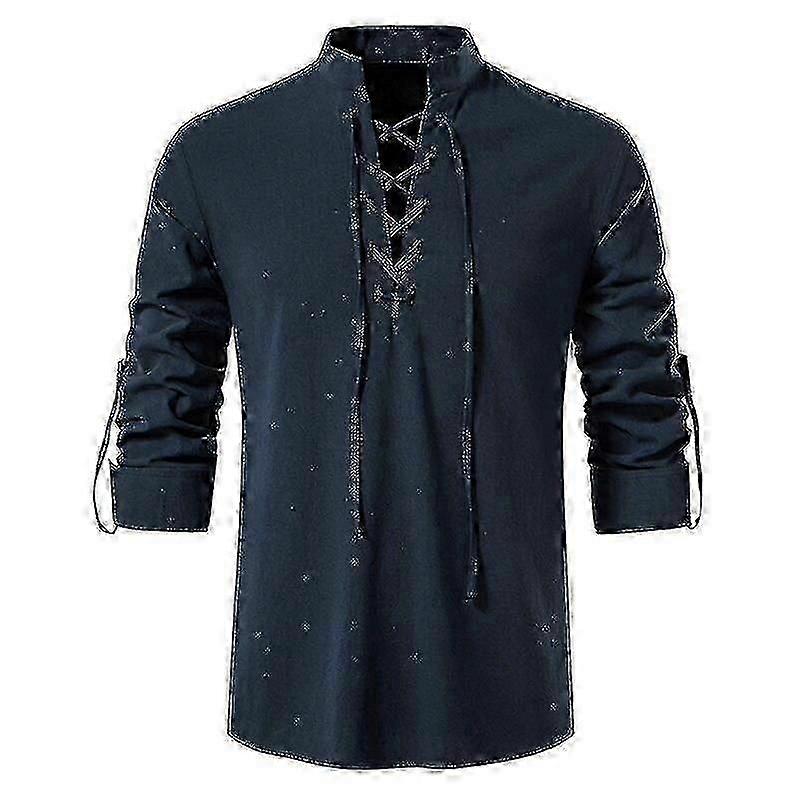 Mens Scottish Jacobite Ghillie Kilt Shirts Medieval Renaissance Pirate Costume Long Sleeve Lace Up Henley Shirt Men Camisas Xxl