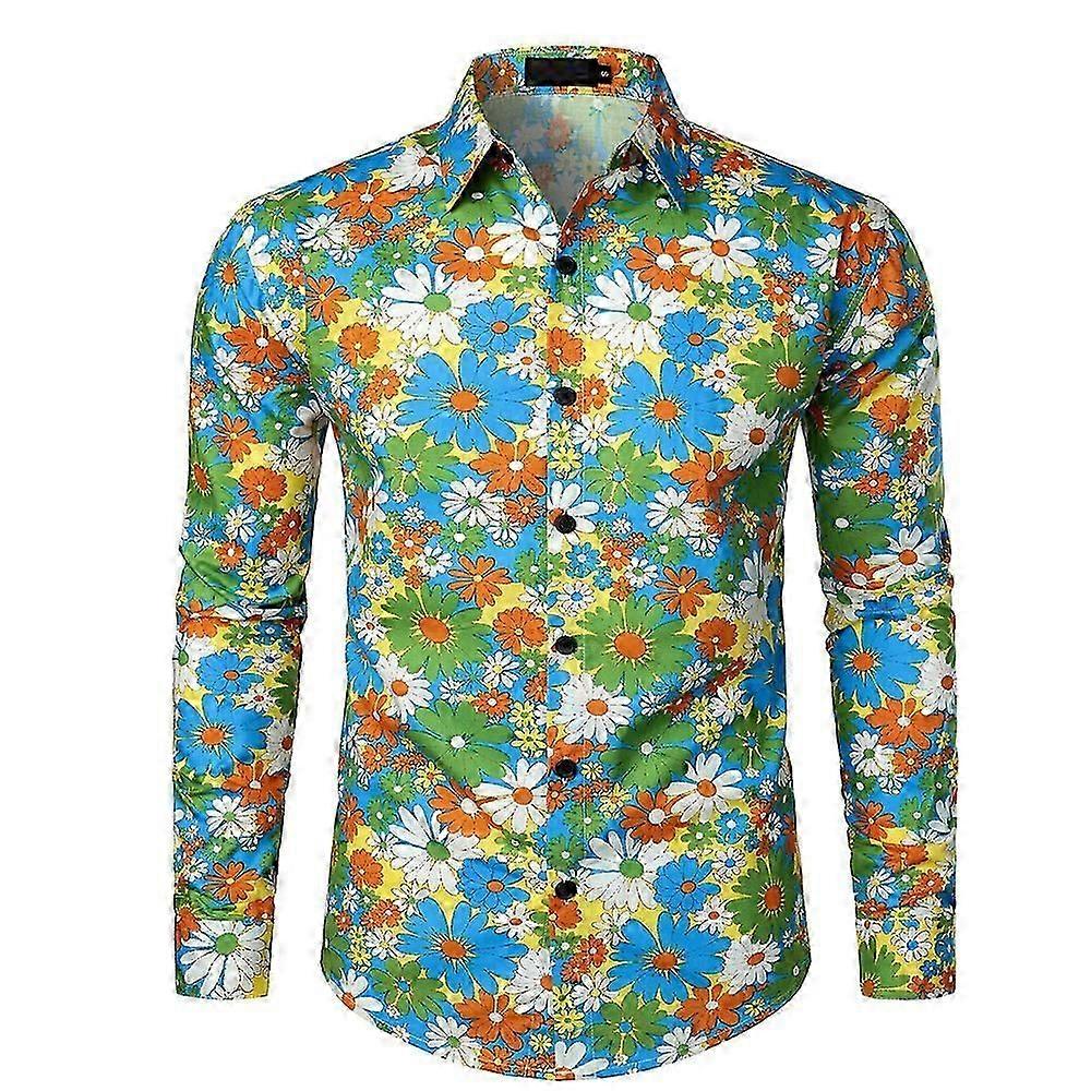 Mens Print Long Sleeve Shirt 70s Ethnic Disco Hip Hop Casual Men Shirt Social Button Down Paisley Floral Vintage Shirt