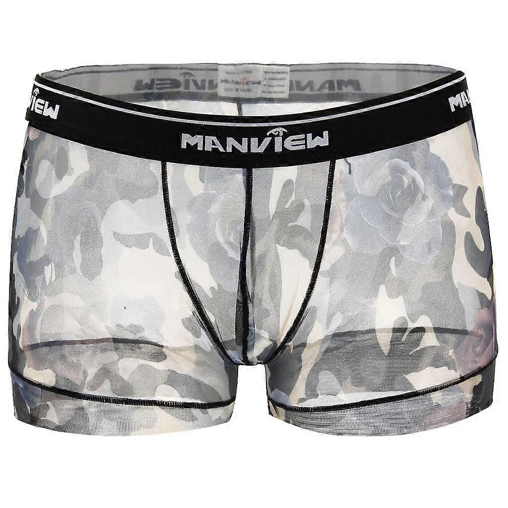 Mens Sexy Mesh See Through Rose Flower Boxer Briefs Underwear Grey M