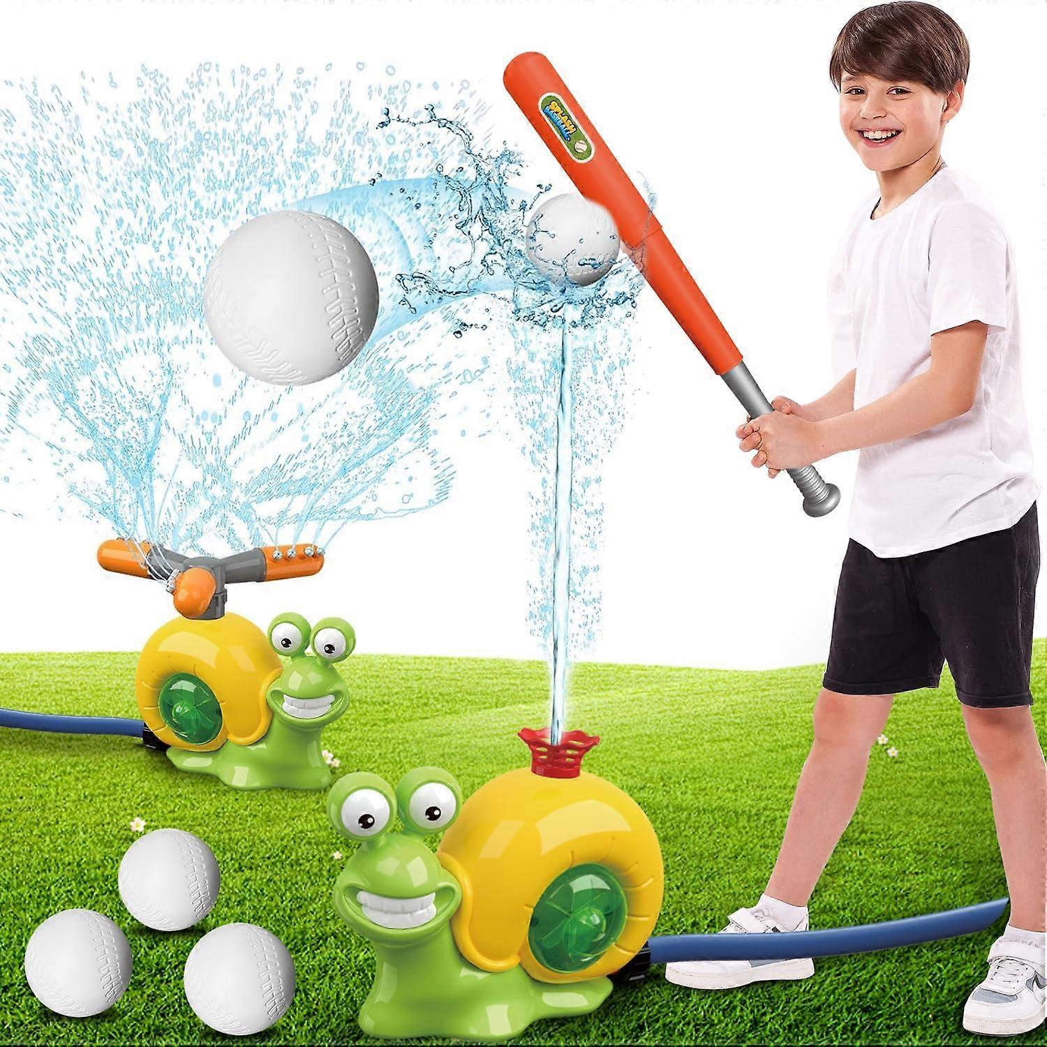 Water Sprinkler for Kids Outdoor Toys, 2 in 1 Snail Summer Baseball Outside Toddler Activities Yard Game Play Attaches to Garden Hose for Kids Backyar