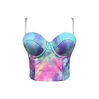 Cowboy Color Tie Dyeing Women's Vest Fashion Sleeveless Short Bustier Corsets Crop Tops