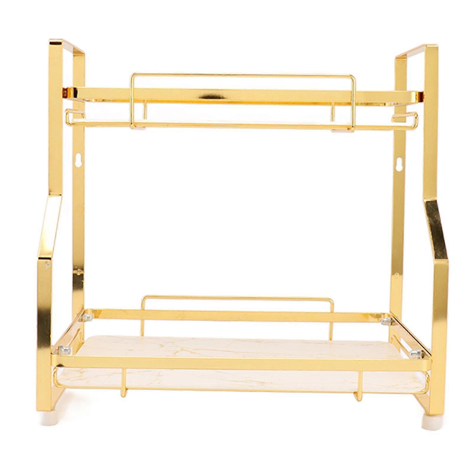 Bathroom Storage Shelf Wall Mounted Corner Organizer Standing Rack for Living Room Bedroom Kitchen White and Gold 2 Tier