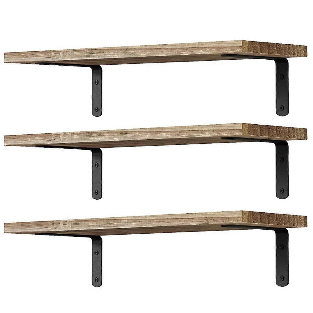 Wood Wall Mounted Storage Shelf for Home Brown Decorate with Good Weight-Bearing Capacity 3 Sets