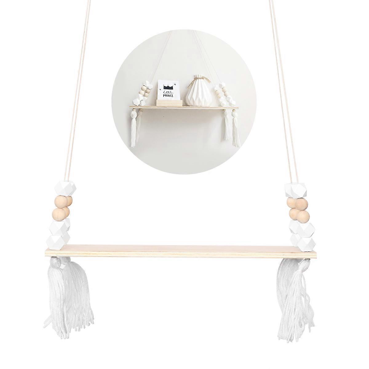 Wooden Hanging Shelf for Wall Storage Rack with Tassel Decorative Organizer in White Color Fits Any .5x6.3 Inches