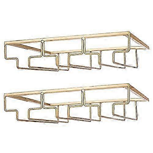 Wine Glass Rack - Under Cabinet Stemware Holder, 2-Pack Metal Organizer for Bar Kitchen, Gold