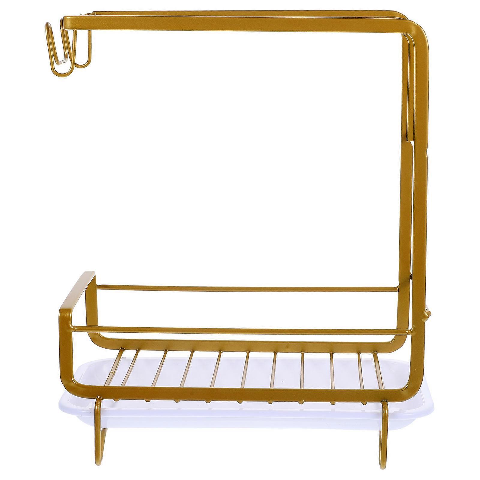 Golden Kitchen Dish Cloth Rack with Water Tray for Sponge and Soap Holder Made of Carbon Steel and PP Portable Lightweight