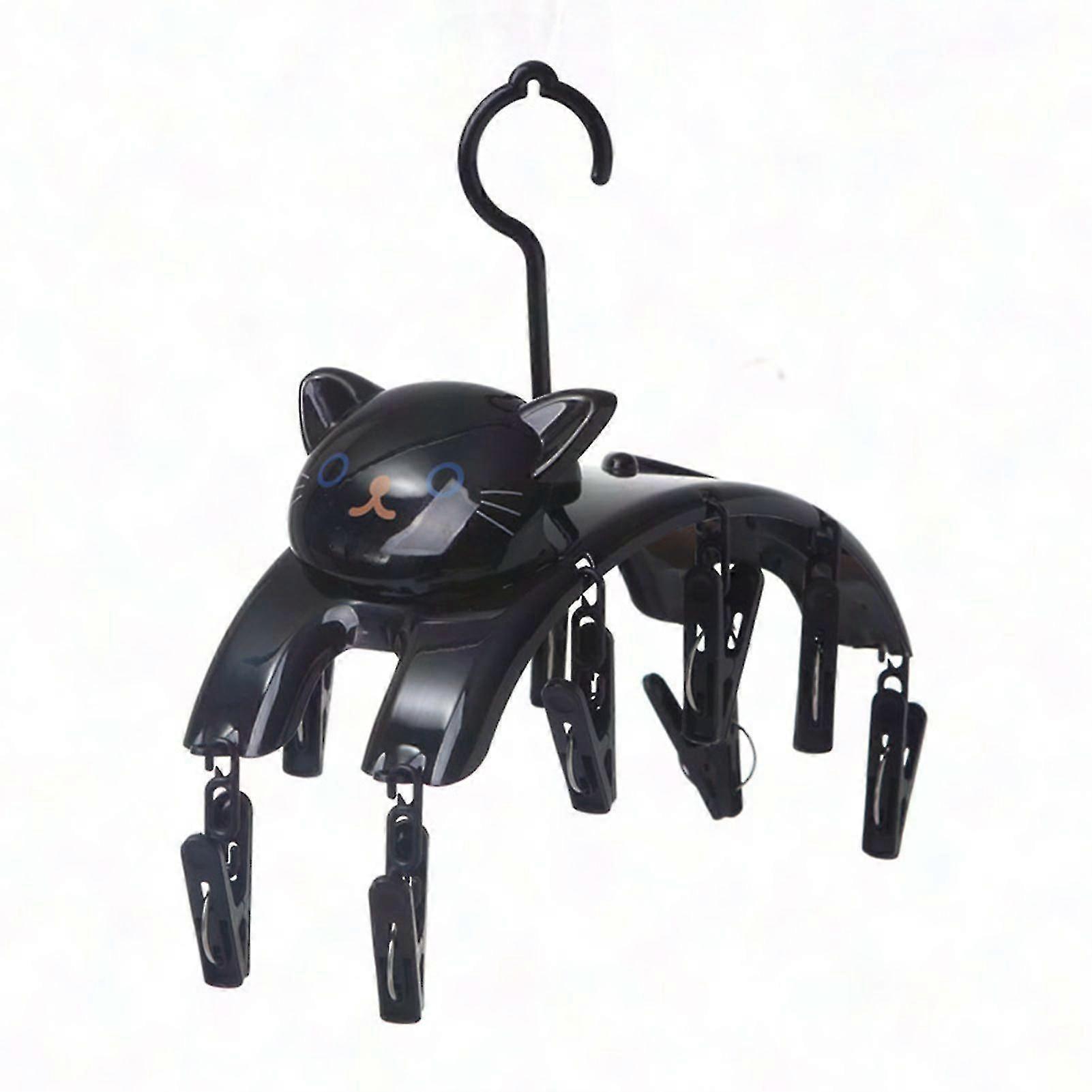 Cute Cat Clothes Rack with 10 Pegs - Windproof & Strong for Hanging, Black
