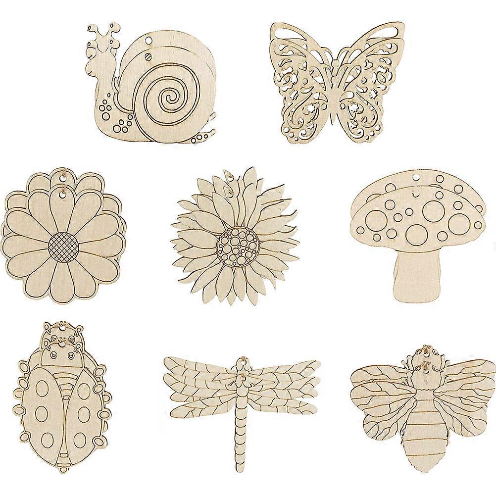 Diy Insect Wood Chips Unfinished Wood Cutouts Home Decoration Assorted Color 8X8X0.2CM Crafting 80Pcs