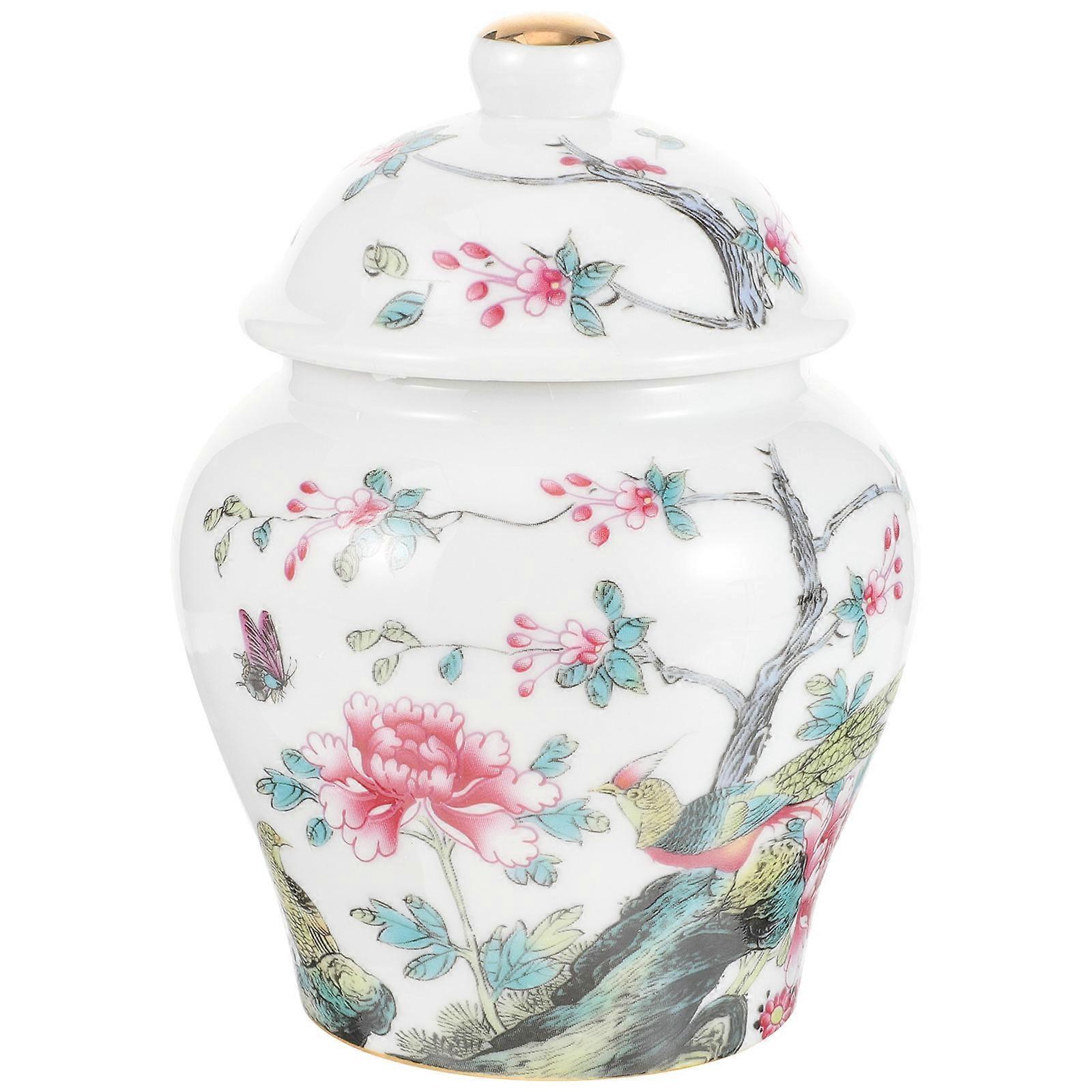 Delicate Flower Bird Pattern Tea Jar Ceramic Candy Storage Jar Tea Storage Pot Kitchen Tea Canister