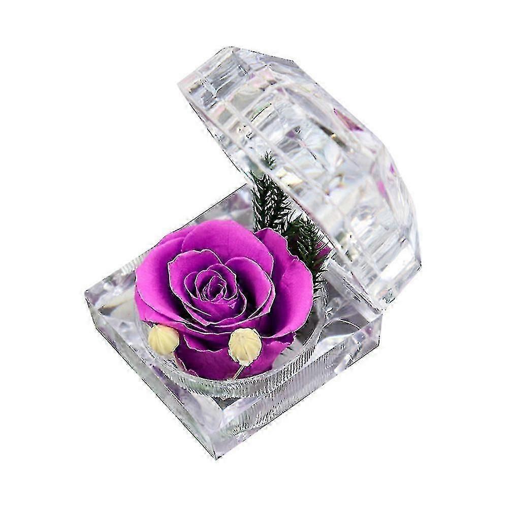 Real Preserved Rose Forever In Mini Clear Ring Box, Gifts For Anniversary,valentines,xmas, Birthday