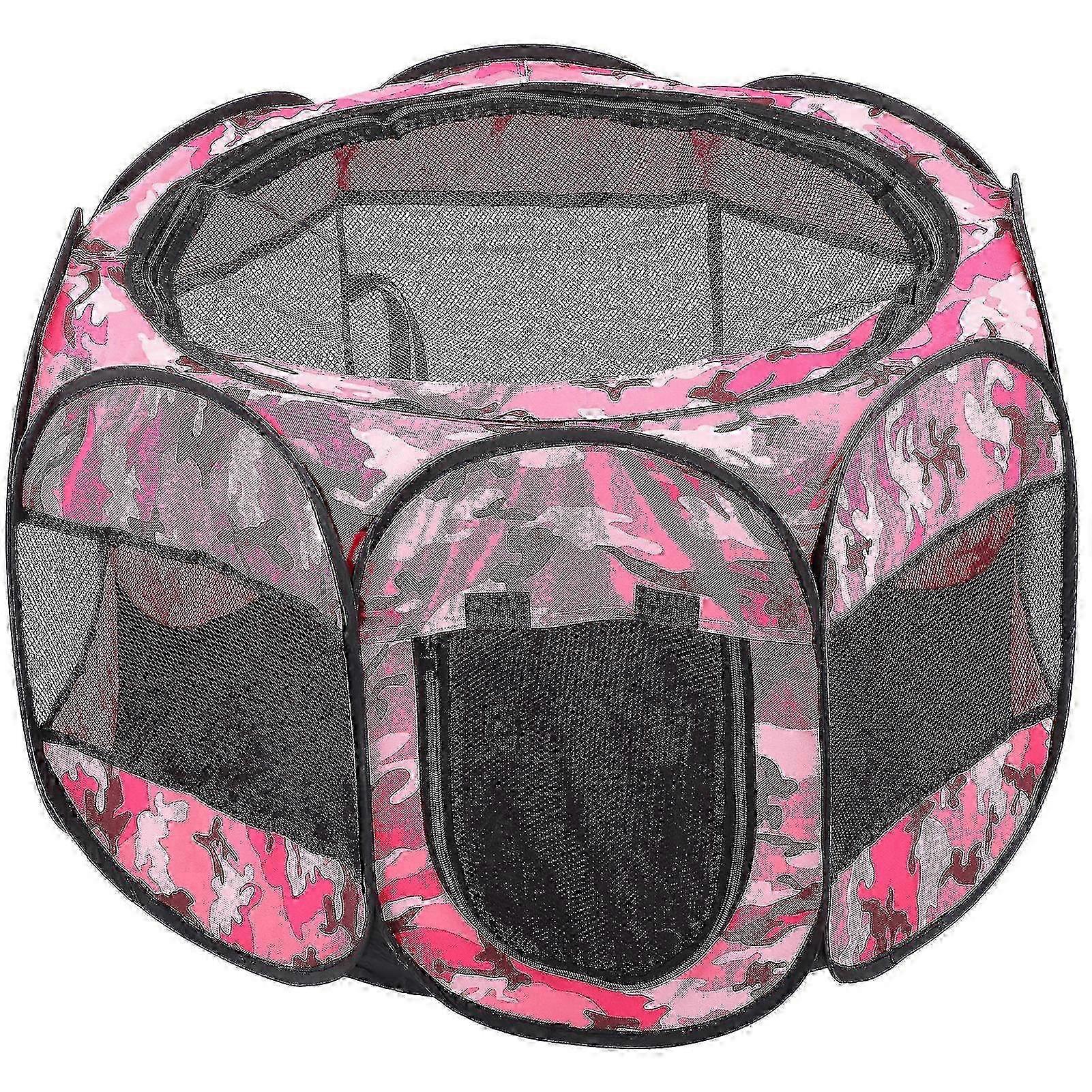 Pink Camouflage Foldable Pet Playpen - Open Air Exercise Pen Tent House Playground for Dogs and Cats