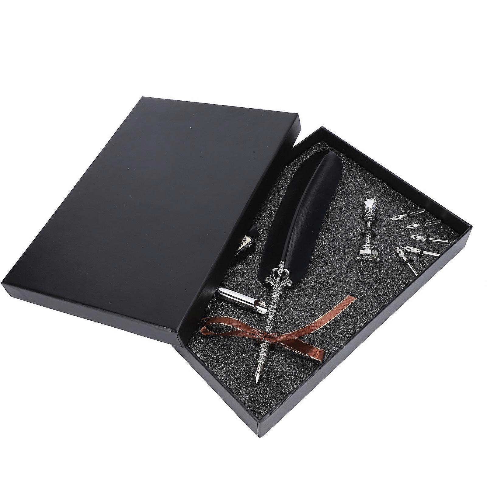 Quill Pen Set Feather Writing Dip Pen Stamp Students Teacher Antique Calligraphy Vintage GiftBlack